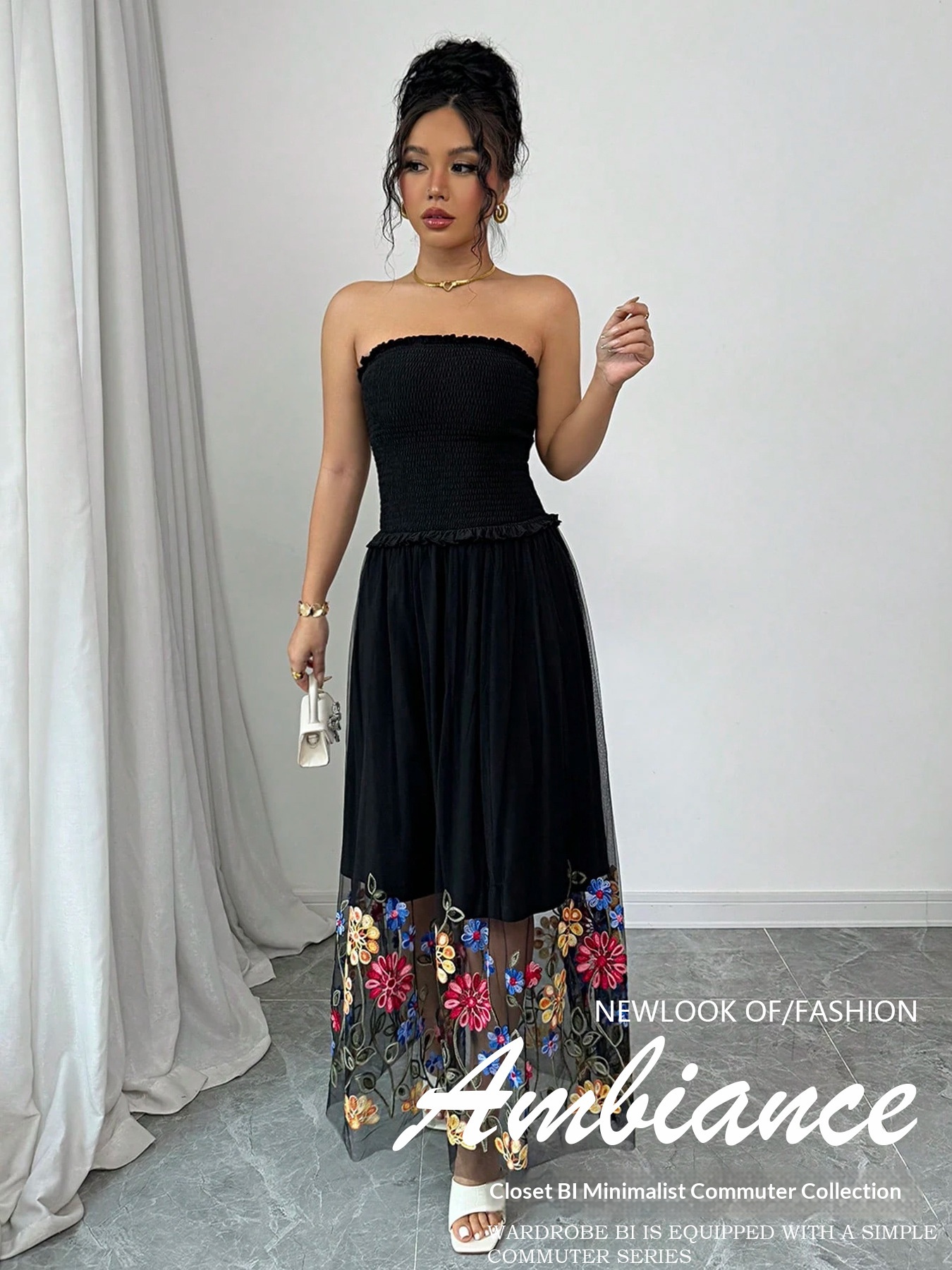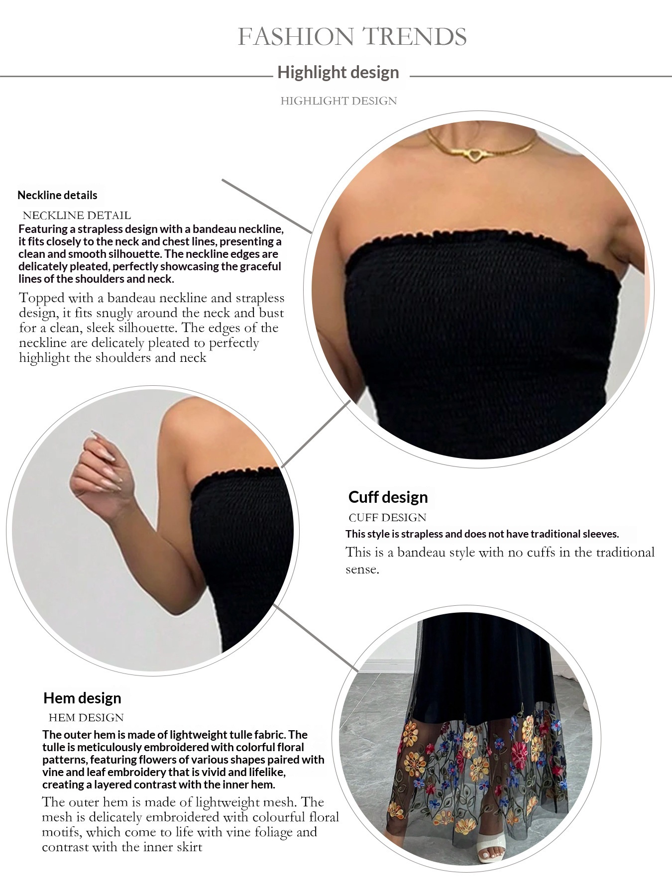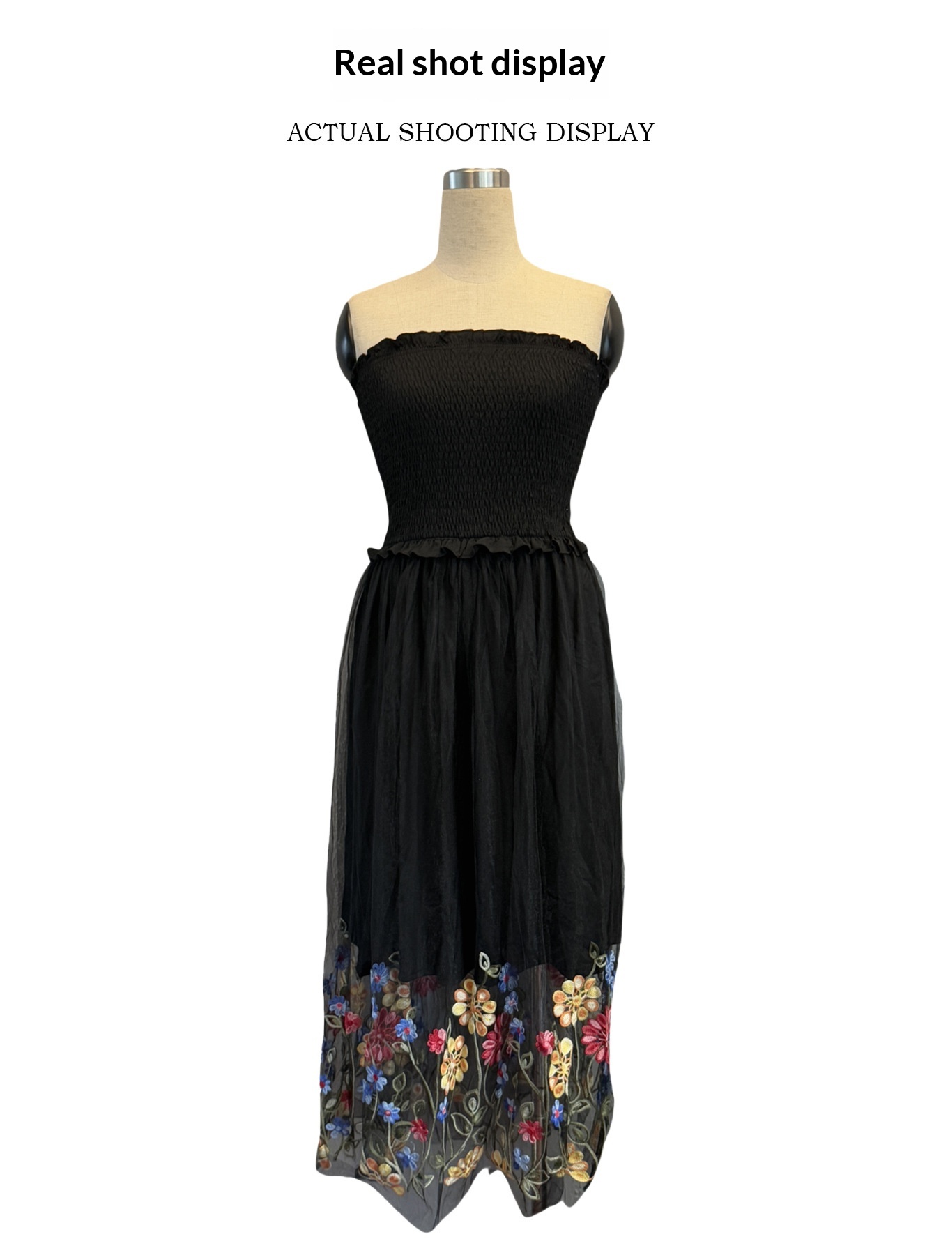 Casual Women's Floral Embroidery Strapless Maxi Dress