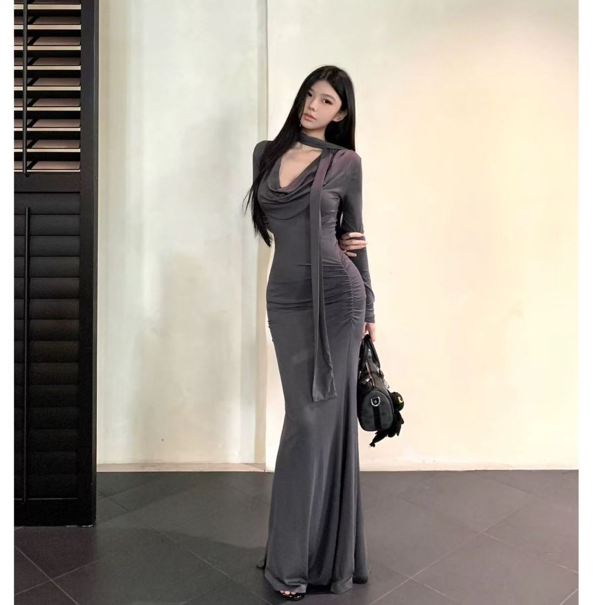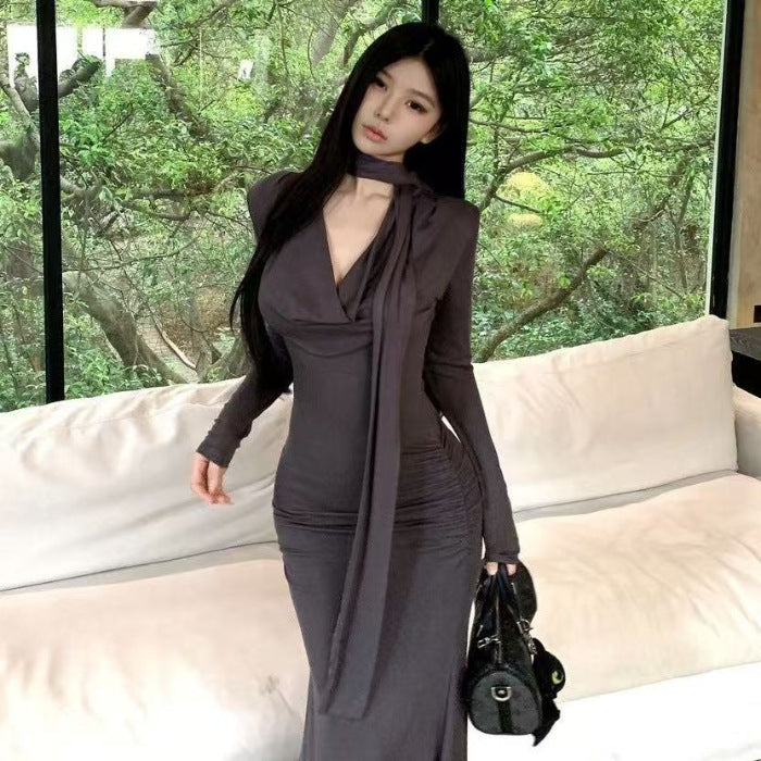 Elegant Cinched-waist Pleated Maxi Dress For Women
