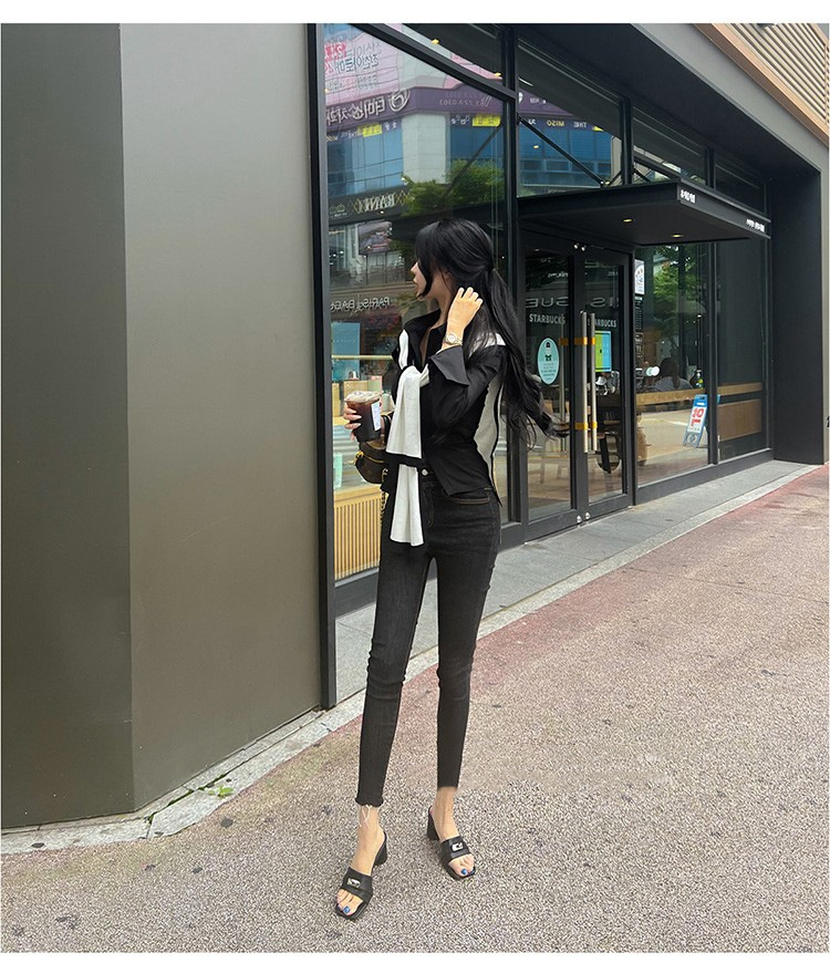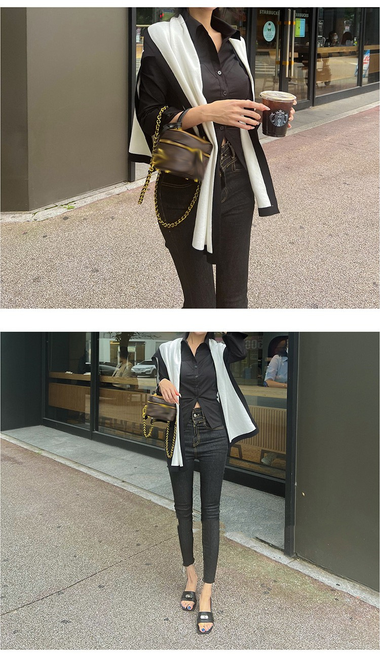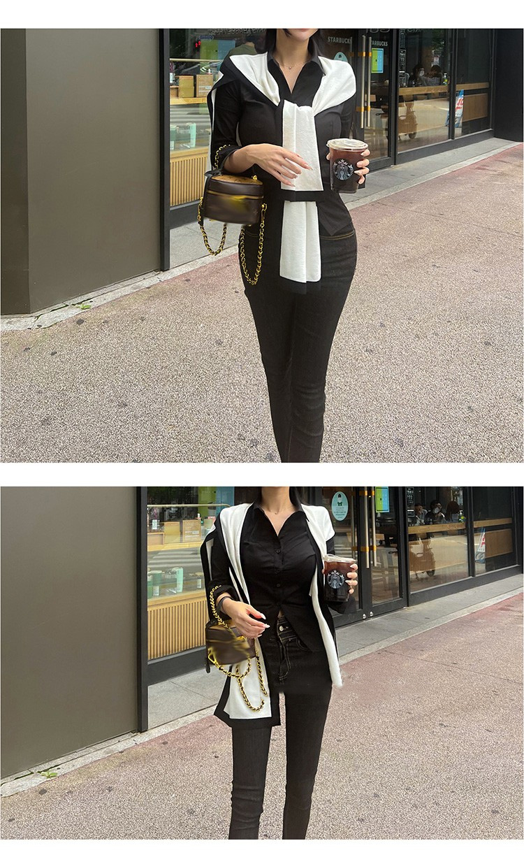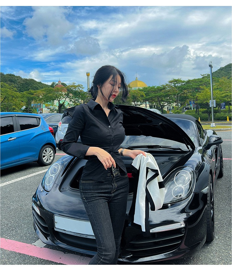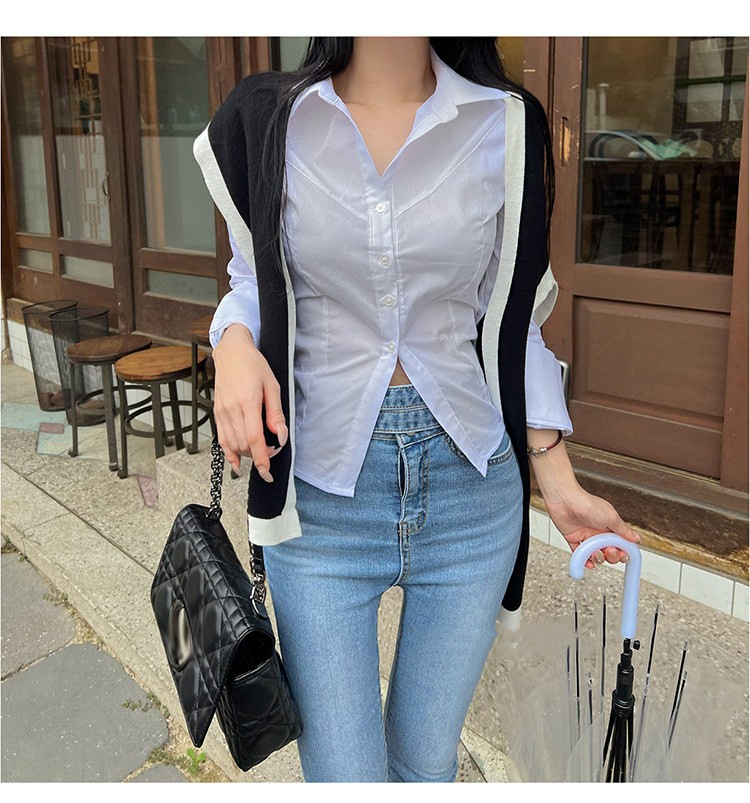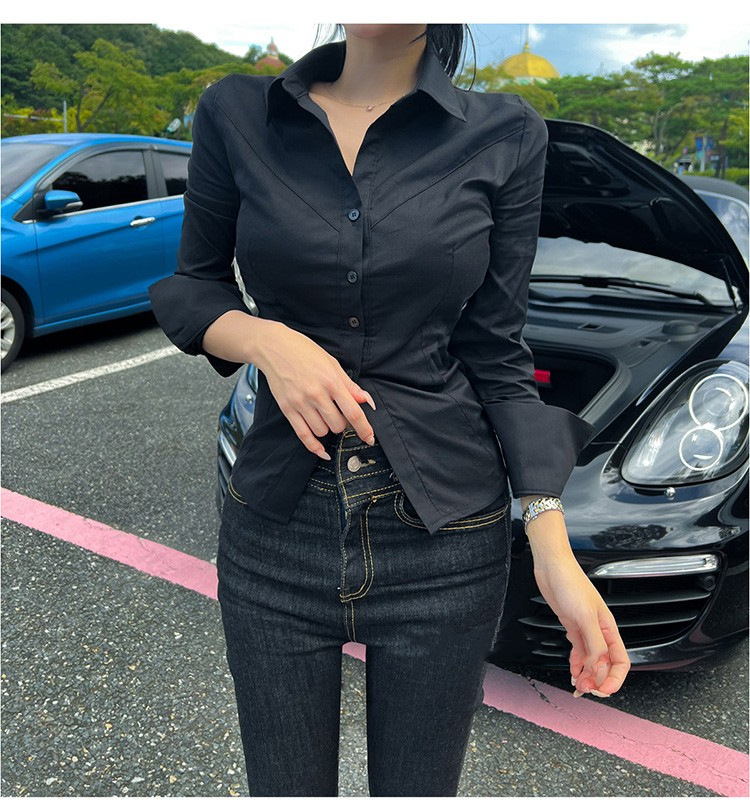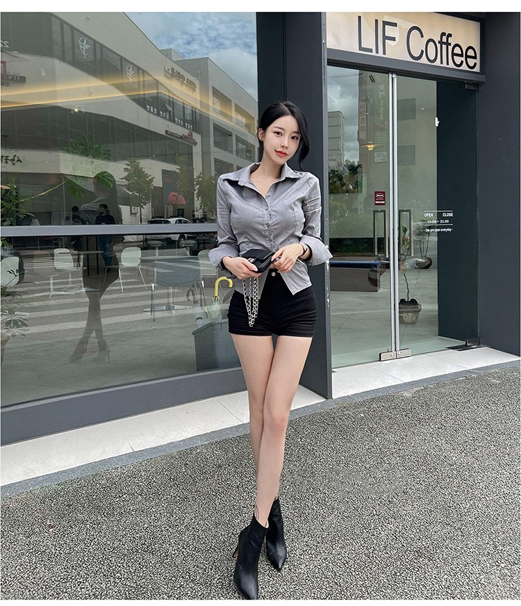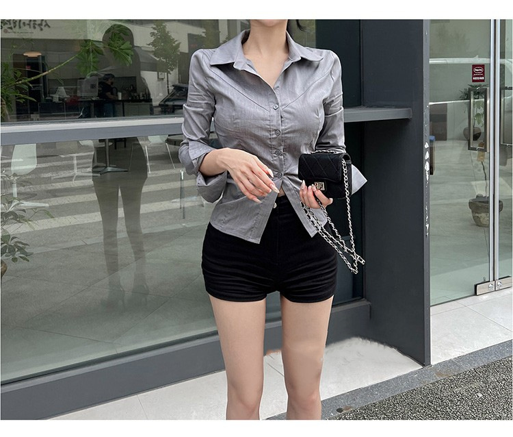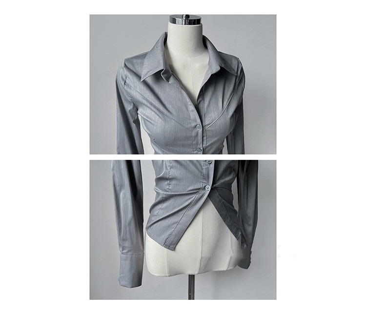 Elegant Gray Design Shirt With Long Sleeves A Turn-down Collar And A Side Slit