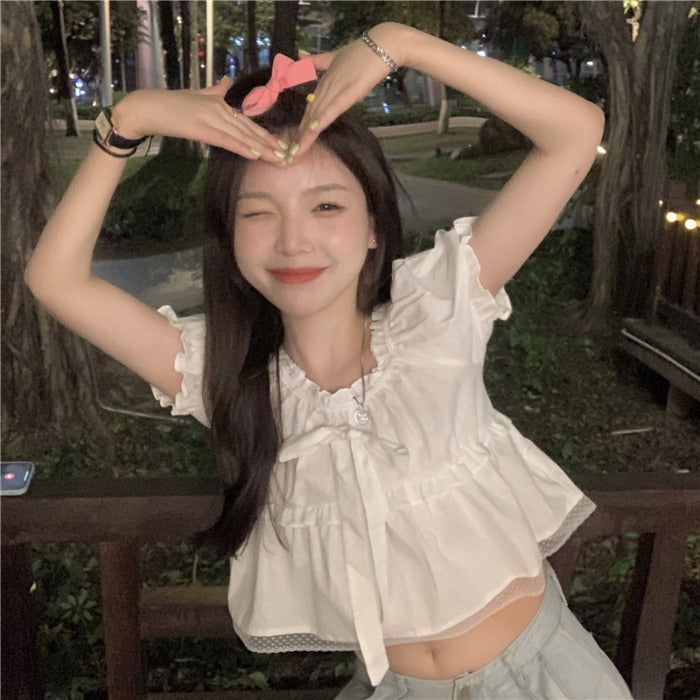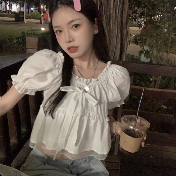 French Short Puff Sleeve Navel Sweet And Spicy Short