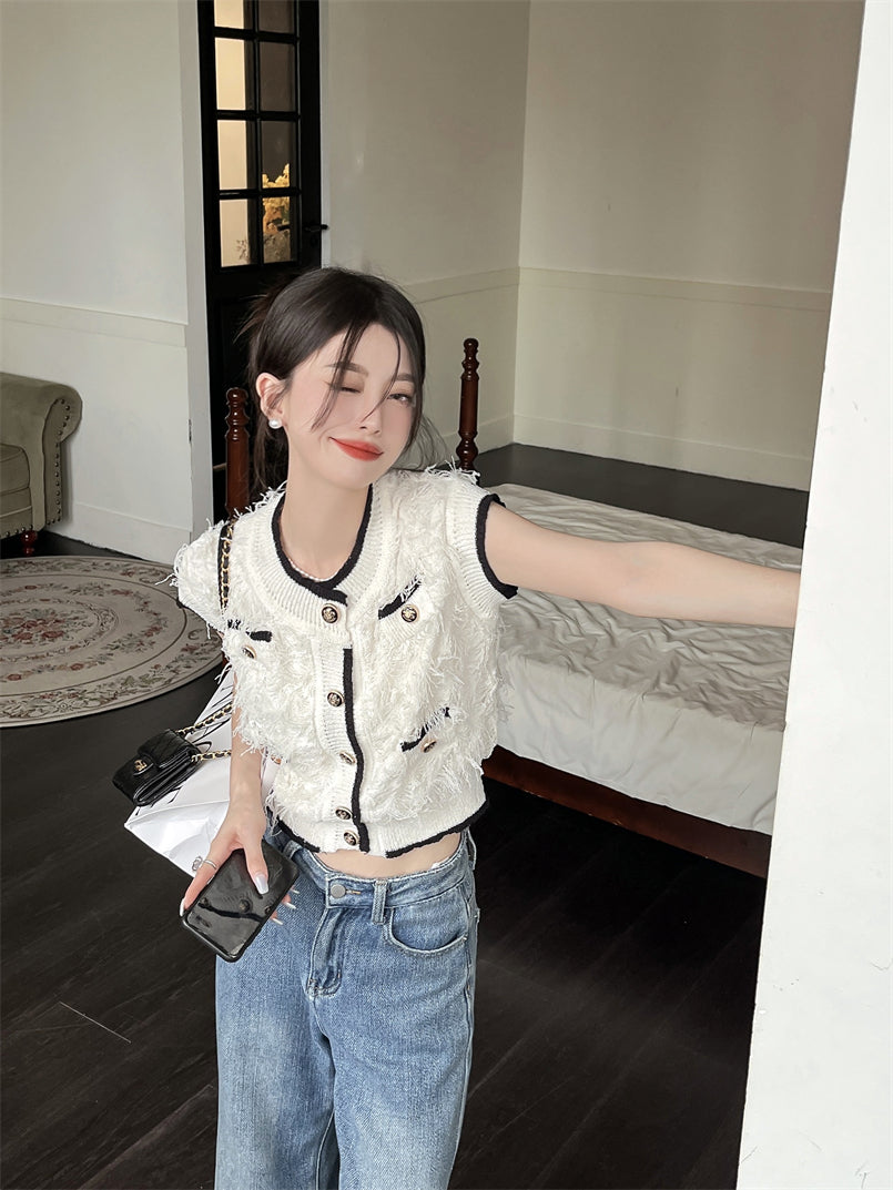 Romantic Su Short Sleeve Cardigan Vest Short Style