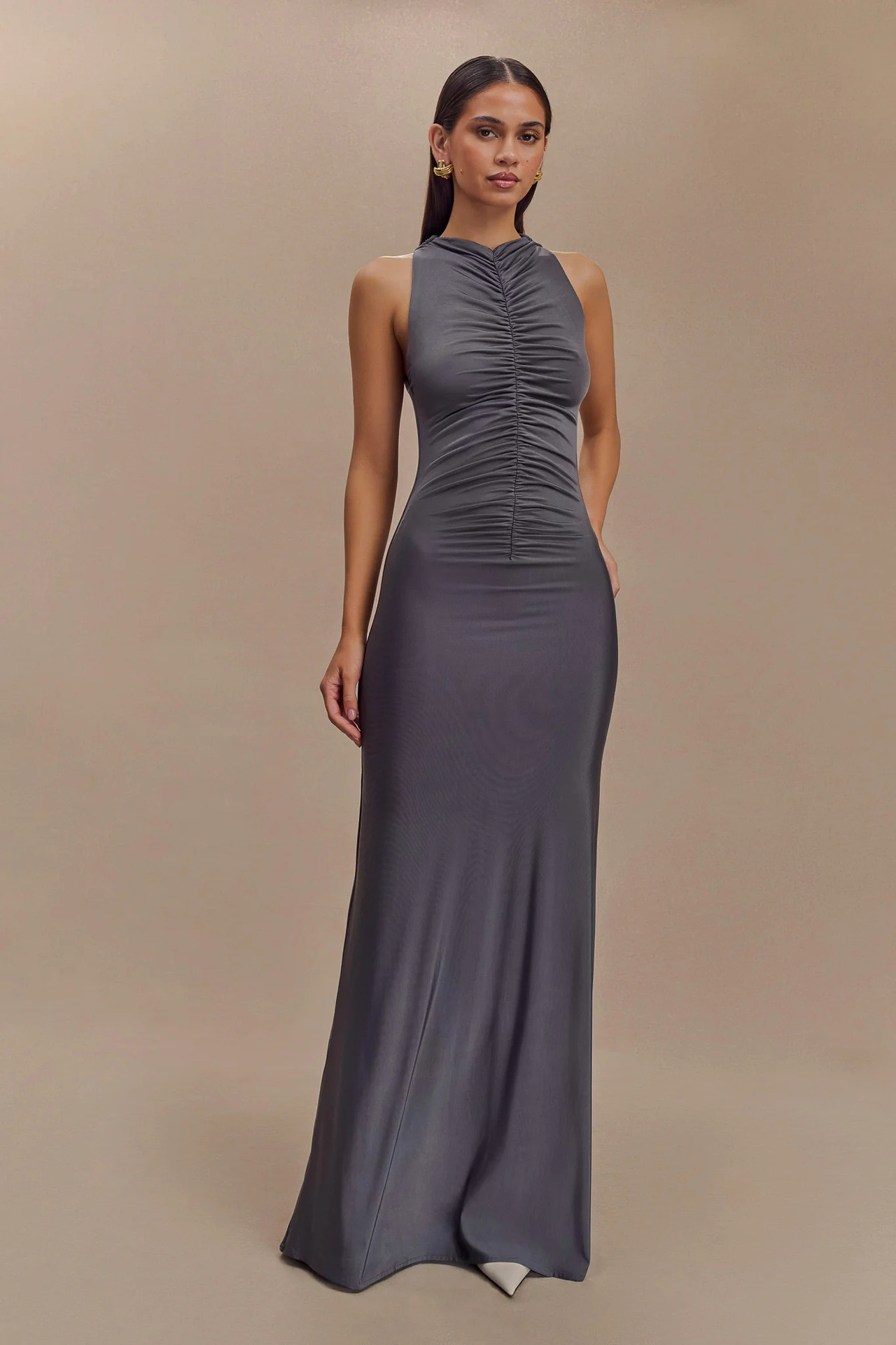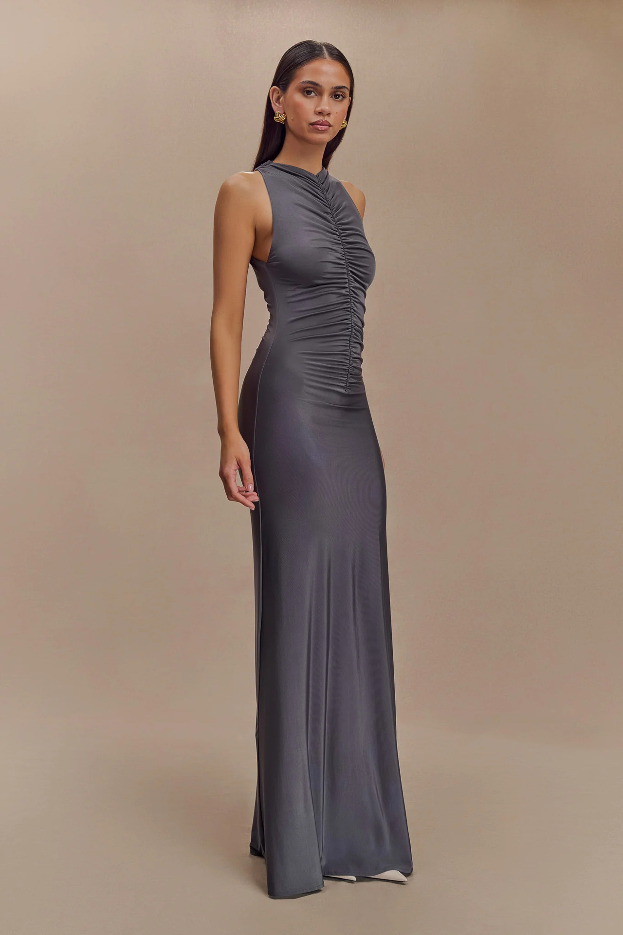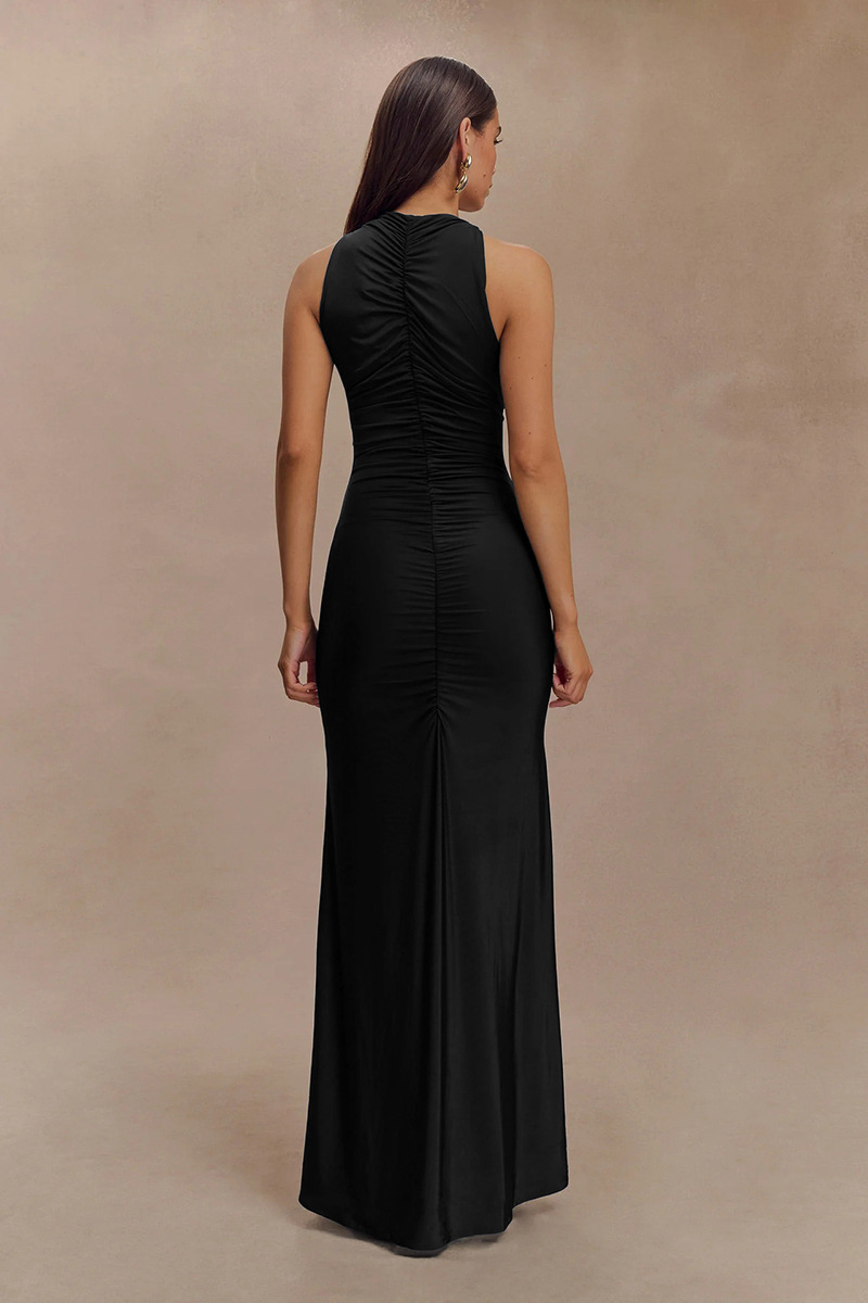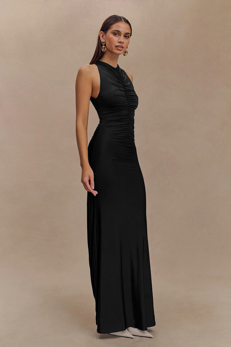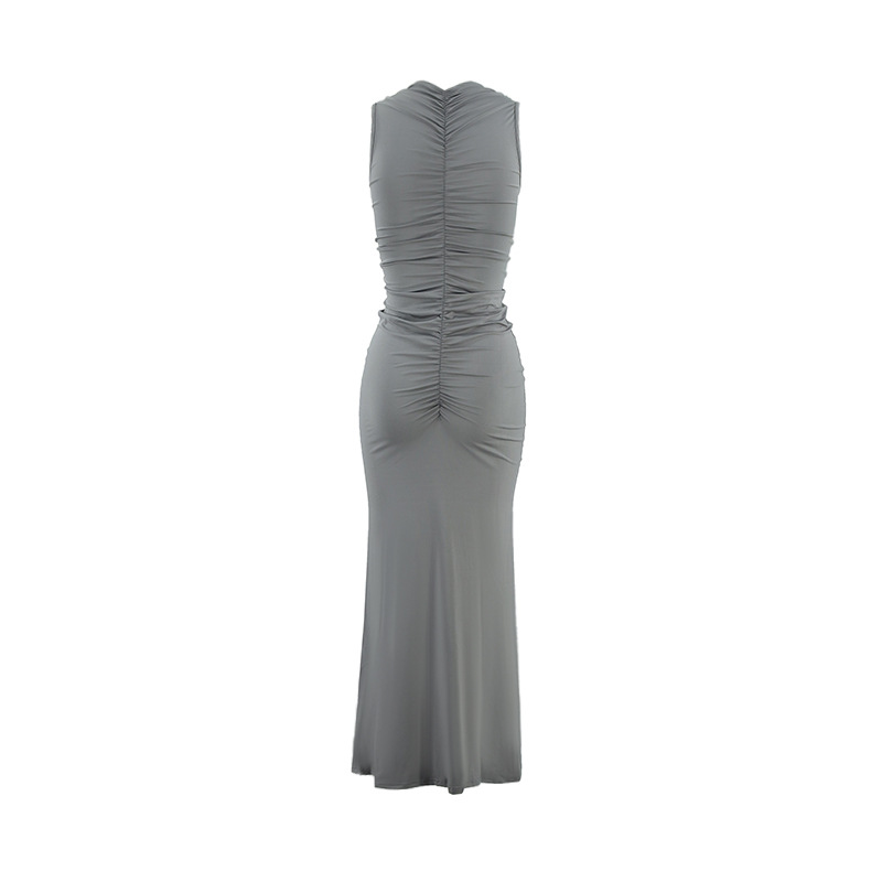 Sleeveless Pleated Elegant Solid-color Maxi Dress