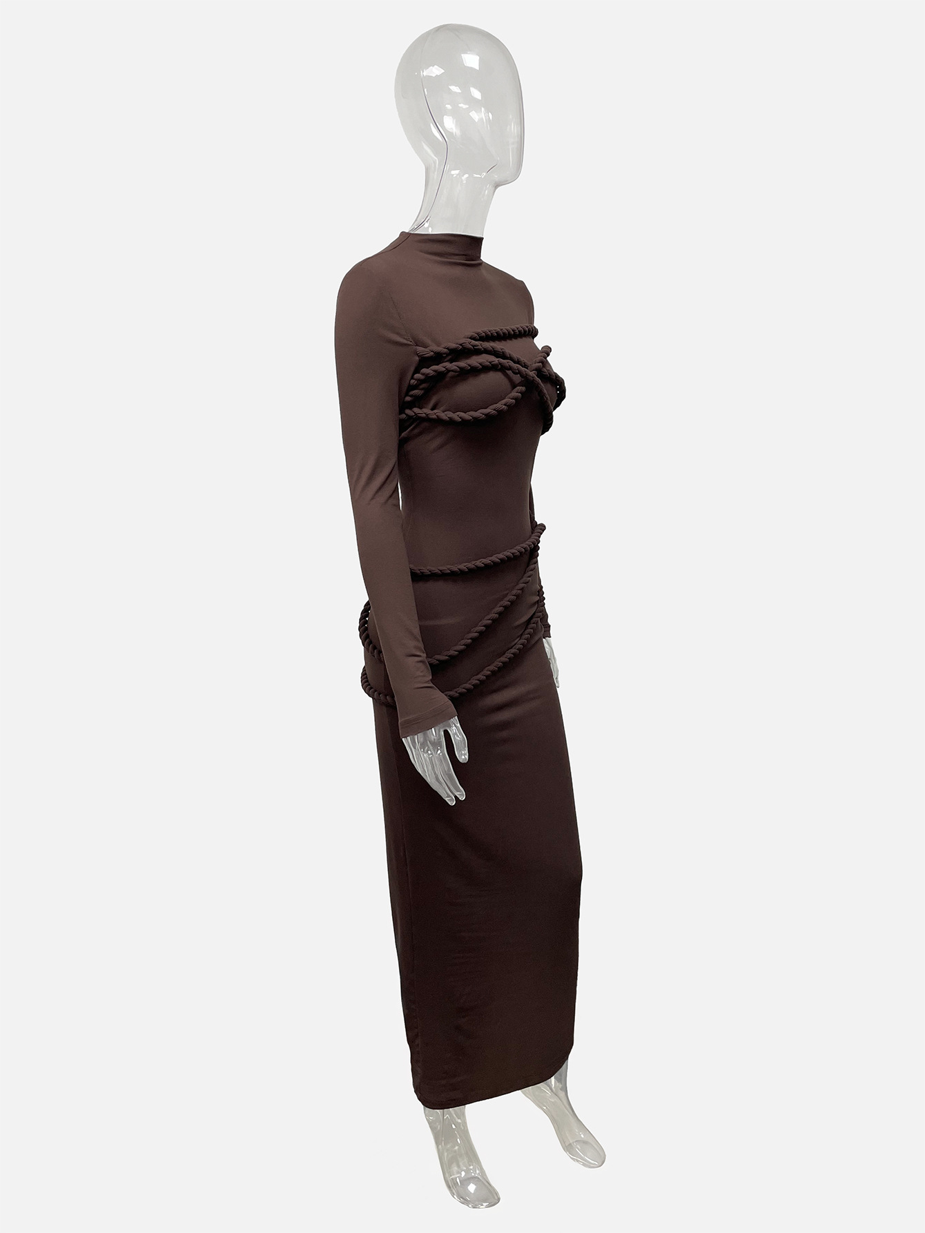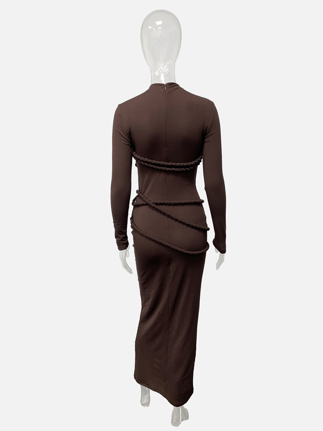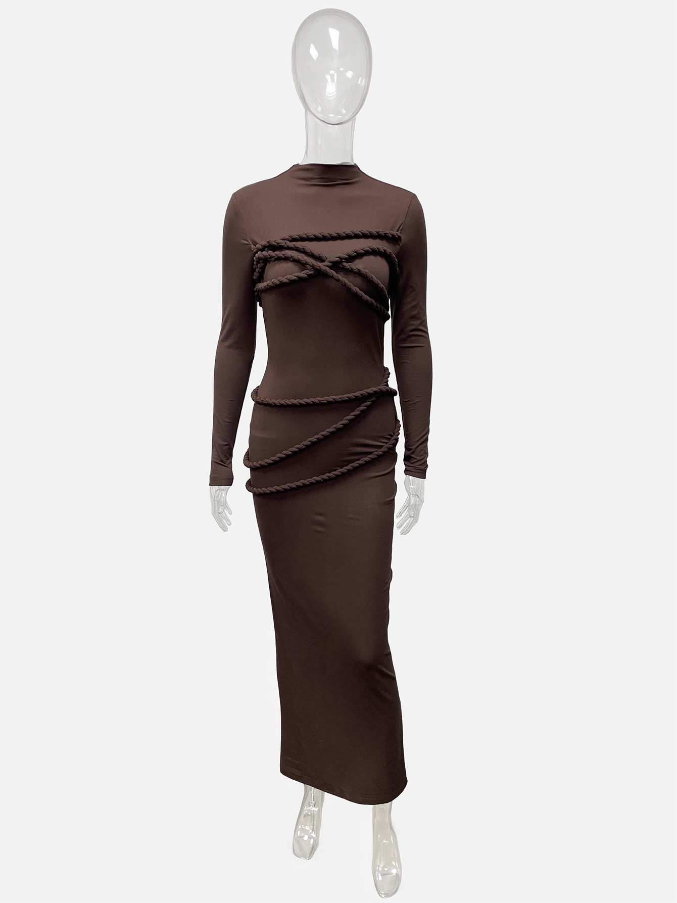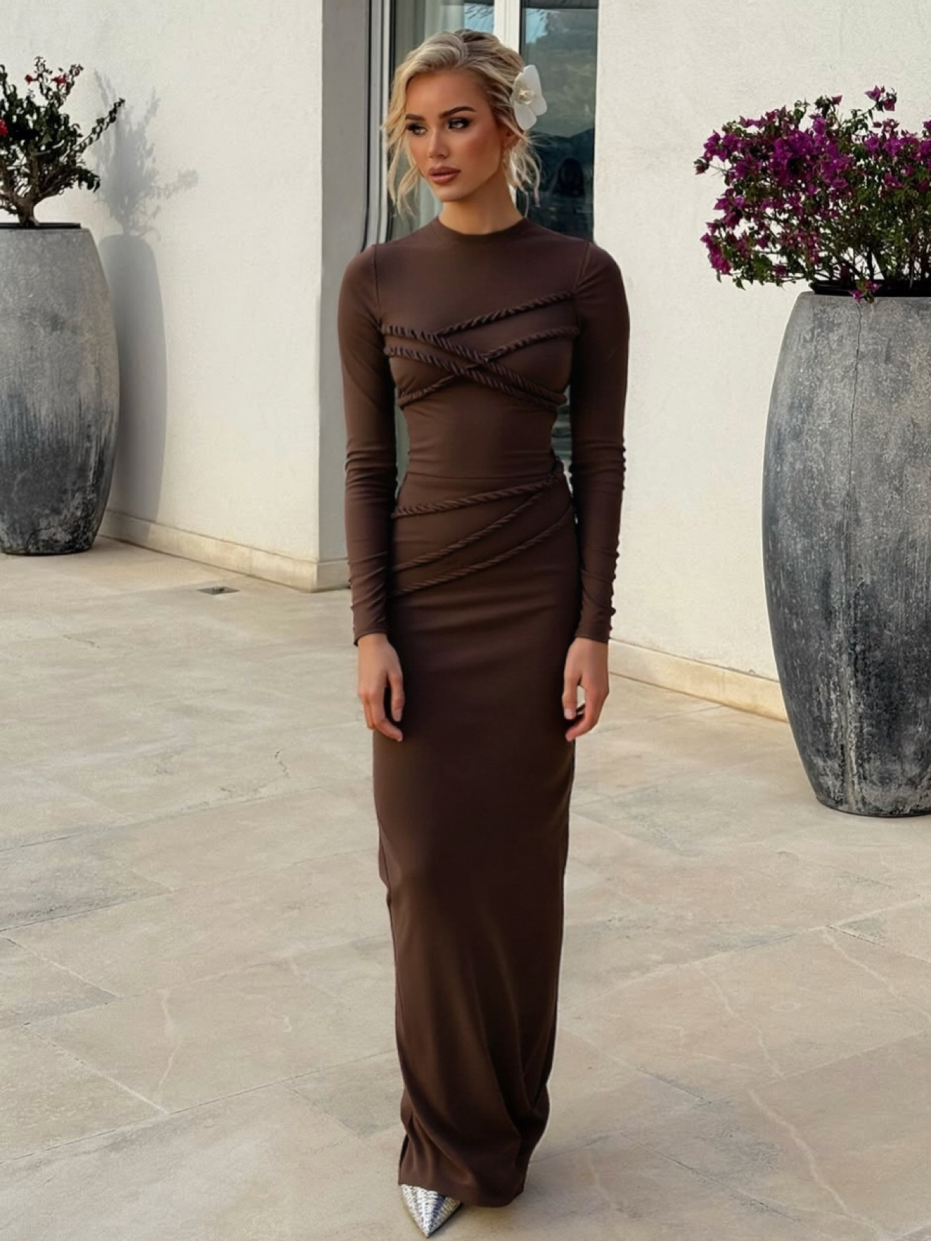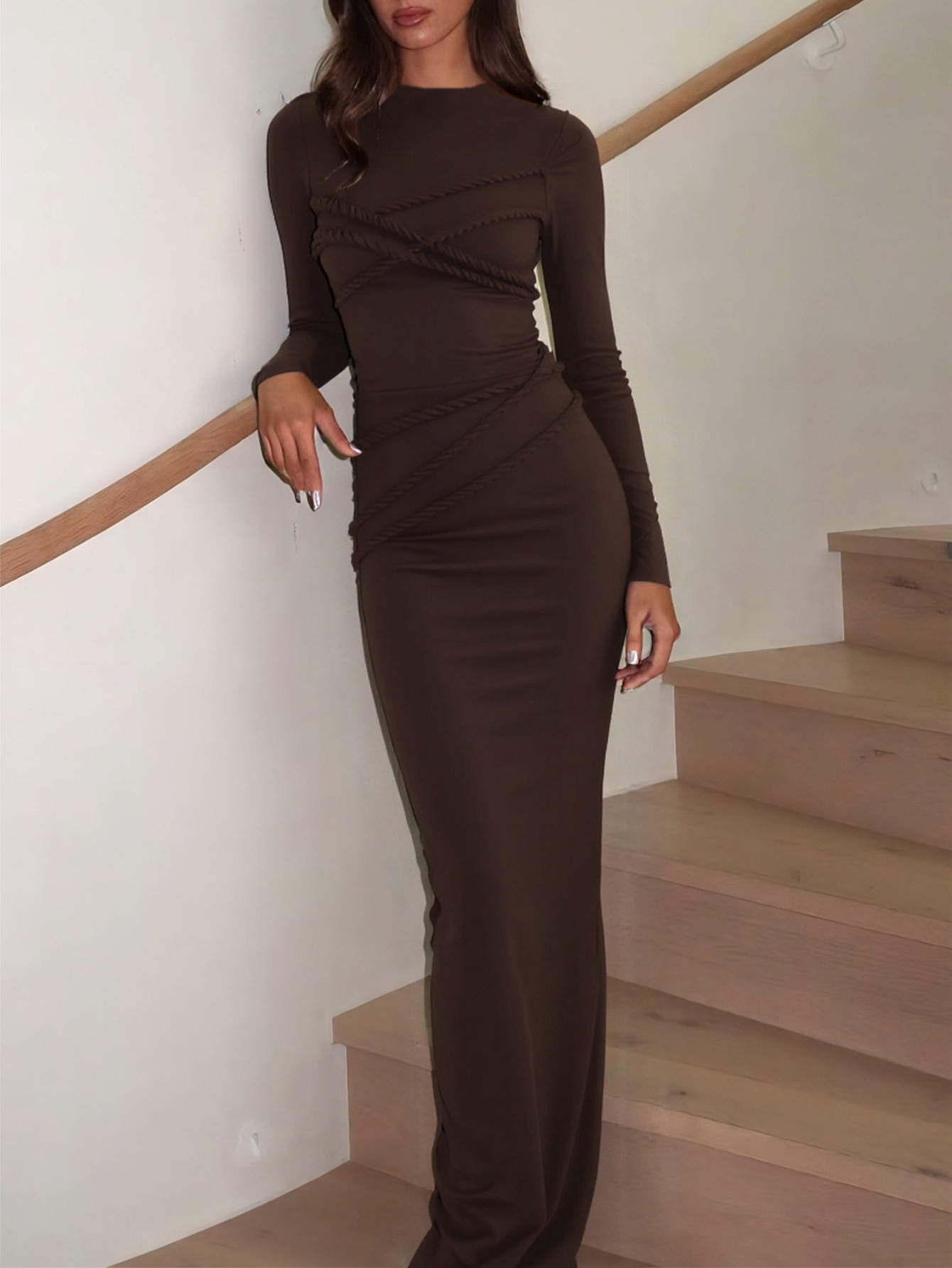Strap-detail Long-sleeve Elegant Maxi Dress