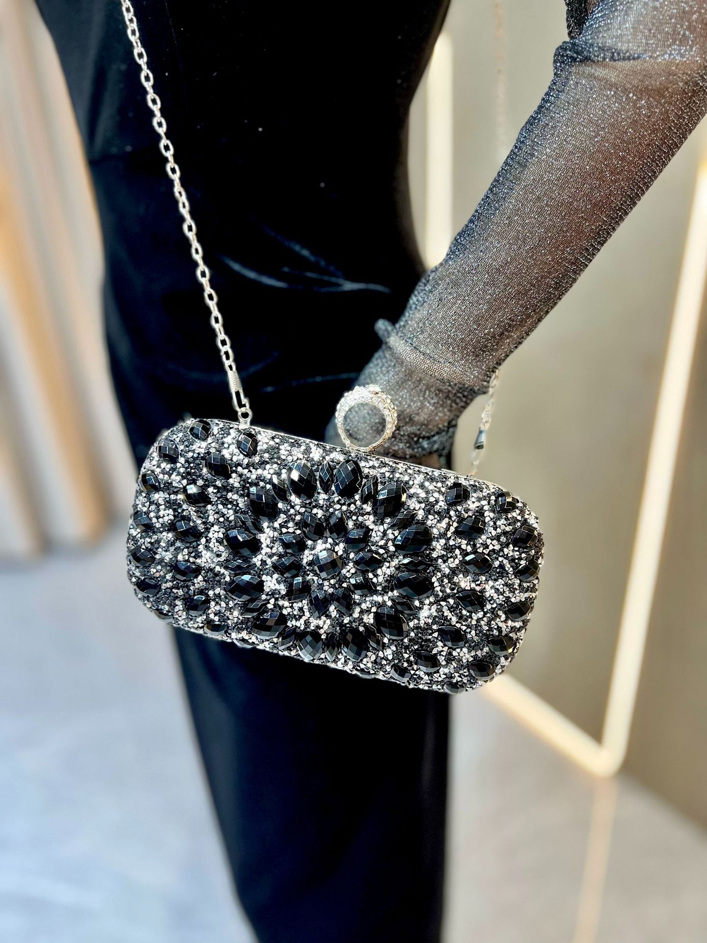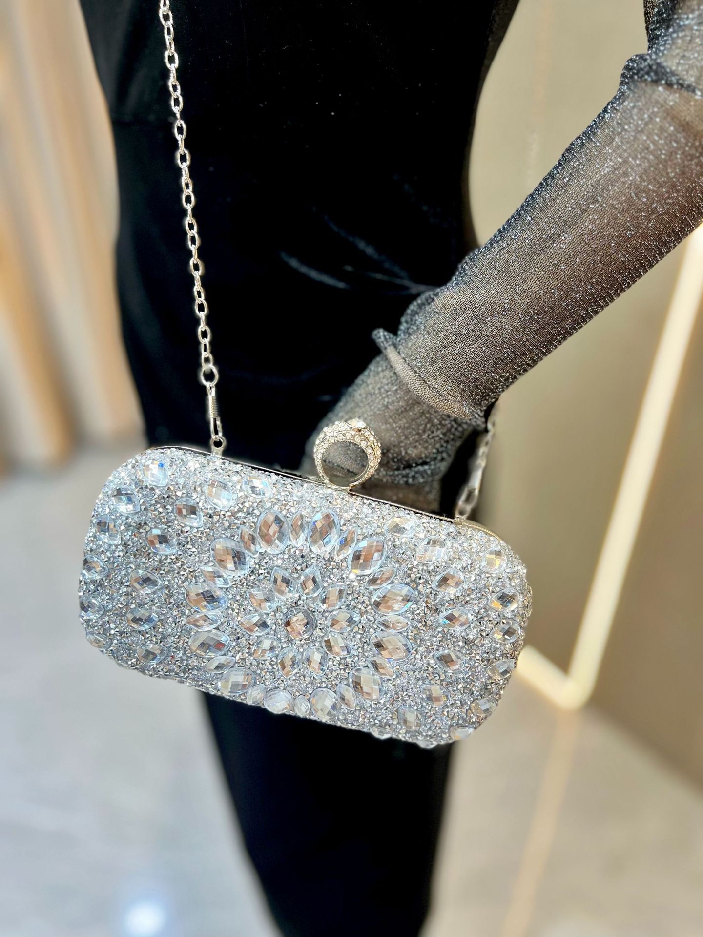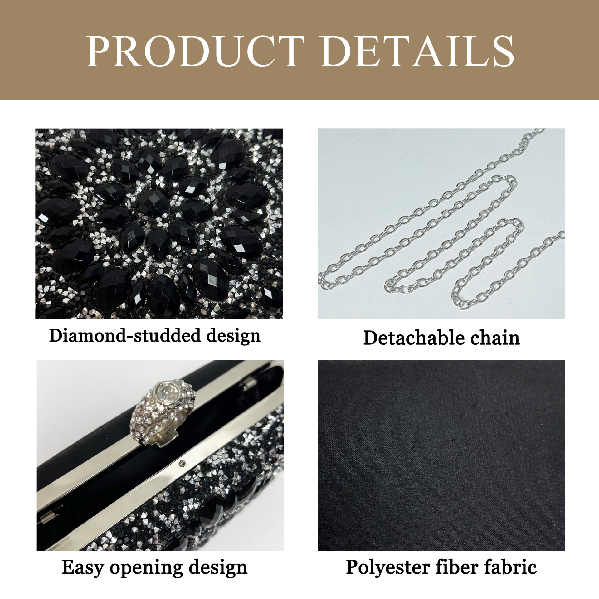 Trendy elements: Diamond embellishments, chain
